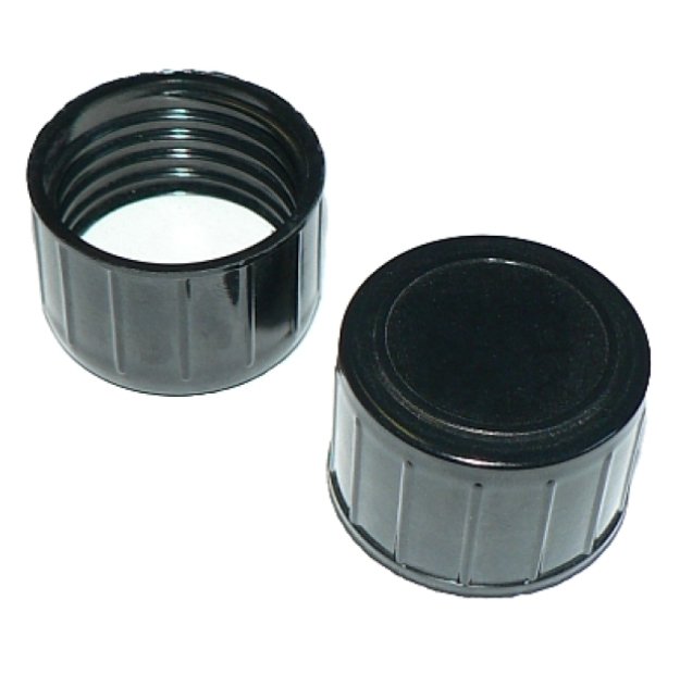 PP šroubovací uzávěr černé barvy pro širokohrdlou láhev o objemu 50 ml.